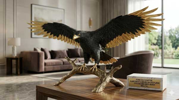 We navigate the metal in five dimensions simultaneously, carving through High-grade Aluminium, Brass, Copper, and Bronze. This allows us to achieve micron level fidelity capturing the tension in a lion’s muscle or the aerodynamic edge of an eagle’s wing with a sharpness that traditional artistry cannot reach.
